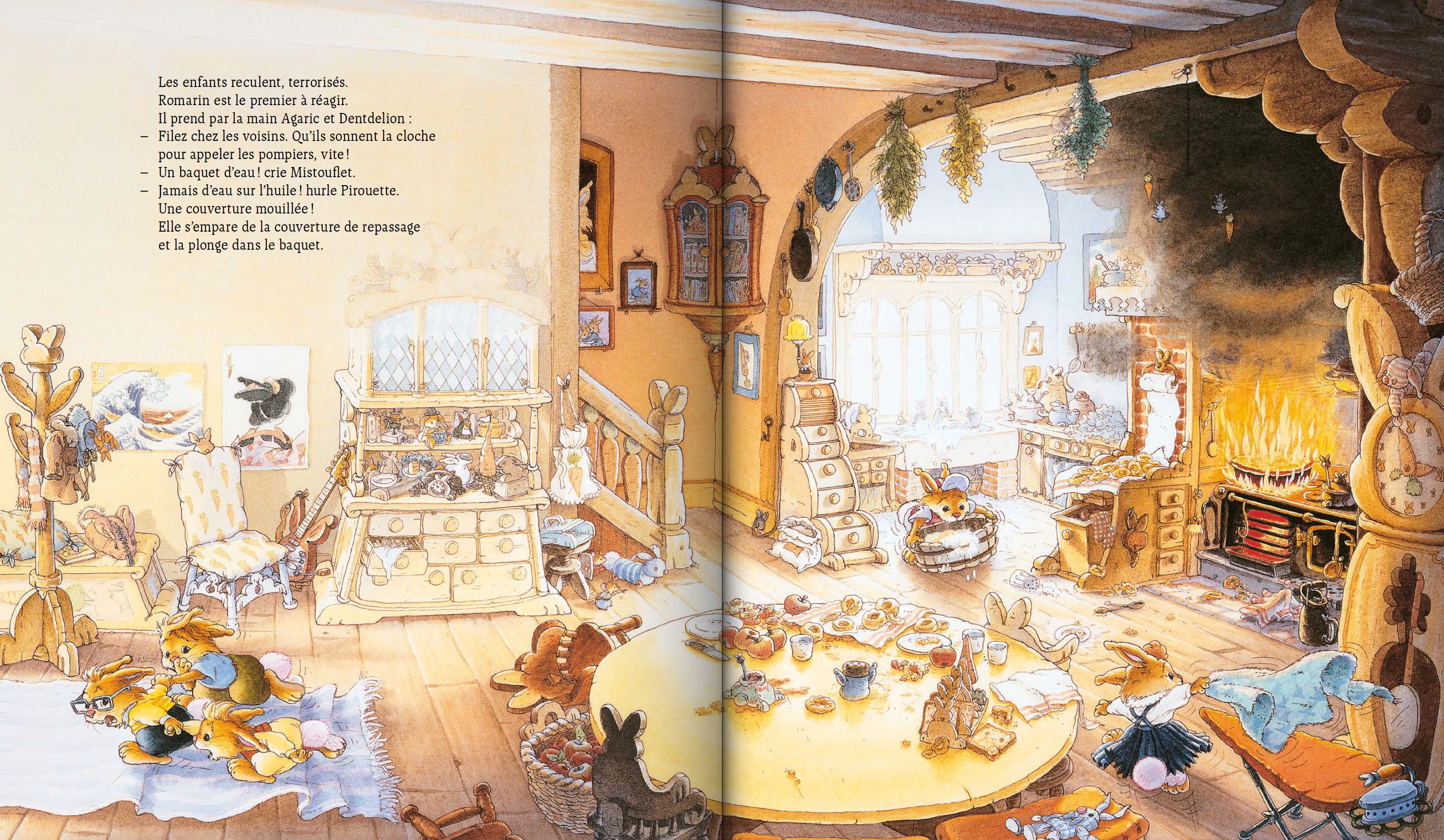 Revoici la famille Passiflore dans une aventure domestique qui explore avec justesse le territoire délicat de l’autonomie enfantine. Les cinq petits Passiflore, seuls au terrier pendant l’absence de leur père et de leur tante, décident de préparer des beignets. Mais lorsque l’huile s’enflamme, les jeunes lapins vont être confrontés aux conséquences de leur initiative… Voici un formidable album jeunesse. D’abord, parce que les sublimes illustrations de Loïc Jouannigot sont toujours aussi remarquables. Ensuite parce que Geneviève Huriet y construit une tension narrative progressive inédite, de l’enthousiasme initial des enfants à l’urgence du danger. Sous l’aventure, le livre distille quelques conseils de sécurité et de bons réflexes sans être péniblement didactique. Réédition d’un des premiers tomes de la série, l’album offre non seulement un frisson d’aventure mais aussi la joliesse et la tendresse de dessins inoubliables. Formidable !