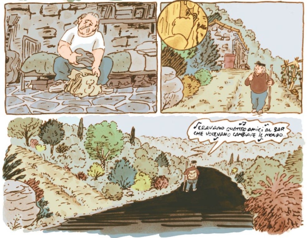Mario est un drôle de vieux monsieur. On sait peu de choses sur lui, à part qu’il vit reclus dans un vieux cabanon et qu’il déroge peu à ses routines. Alors lorsque celui-ci prend la route, on s’étonne de le voir partir à l’aventure. Il faut dire que l’un de ses vieux camarades vient de mourir. Voici Mario en train de parcourir la campagne française à pieds, profitant de ses rencontres pour trouver un peu de nourriture ou un toit pour la nuit. Et si l’on sent bien que cet homme sait se débrouiller, c’est qu’il a un secret… Dans sa jeunesse, Mario a été un activiste italien recherché par la justice… Avec ce très joli album, Pierre Maurel, auteur discret maintes fois primé pour sa série “Michel” vous emmène en voyage dans le temps. C’est joli, poétique, et très humain. Un très bel album qui touche par sa simplicité.