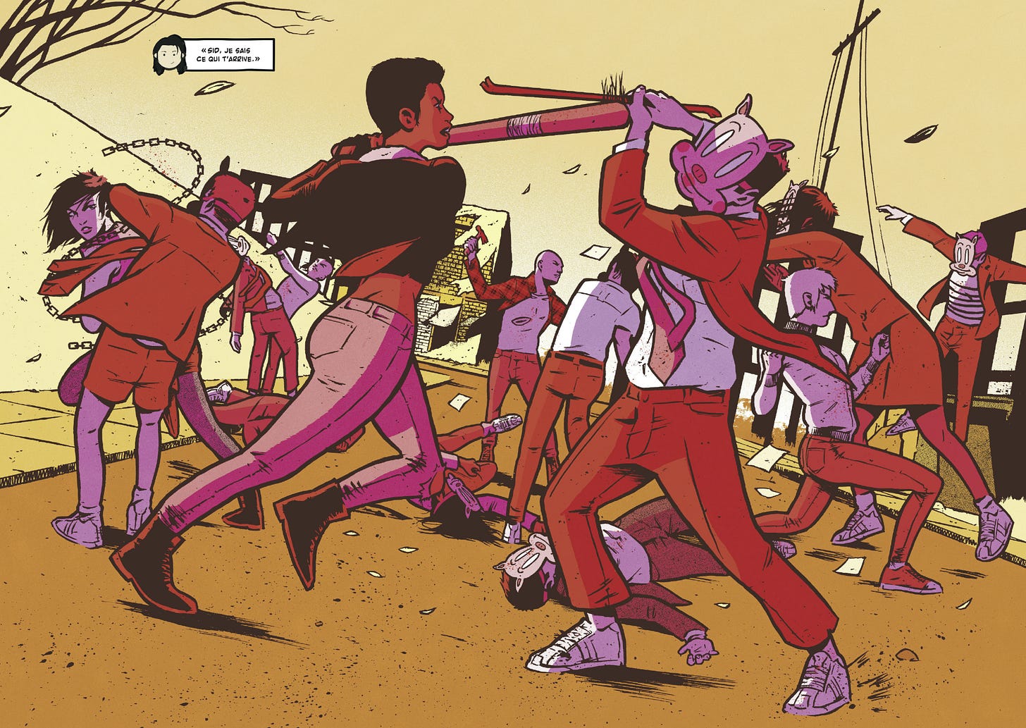 Mélange de survie post-apocalyptique, d’aventure et de mystère initiatique, le récit de cette série, d’abord parue aux États-Unis, est structuré autour des rivalités de gangs d’adolescents qui ont pour règle de ne jamais grandir. Le style graphique de Tyler Boss et le ton singulier Matthew Rosenberg se marient à merveilles. L’intrigue est rythmée et surprenante ; c’est à la fois violent et parfois étrangement émouvant. Un peu comme si les enfants perdus de Peter Pan rencontraient La Ferme des animaux et Les Fils de l’homme. Super.