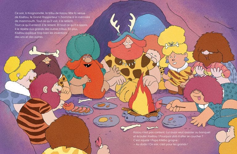 Vous saviez que l’école n’était pas une punition, mais une idée brillante venue de la préhistoire ? Dès qu’il dit "Pourquoi ?", le petit Kazou est propulsé dans notre monde moderne. Et comme il est très frustré que personne n’ait rien retenu de ce qu’a dit Kisétou, le voilà en quête d’une solution pour faire apprendre des choses à sa tribu… Patricia Berreby et Jean-François Biguet signent un nouvel album drôle, dynamique et plein de bonnes valeurs. Parfait pour aider les petits à apprivoiser la rentrée avec le sourire !